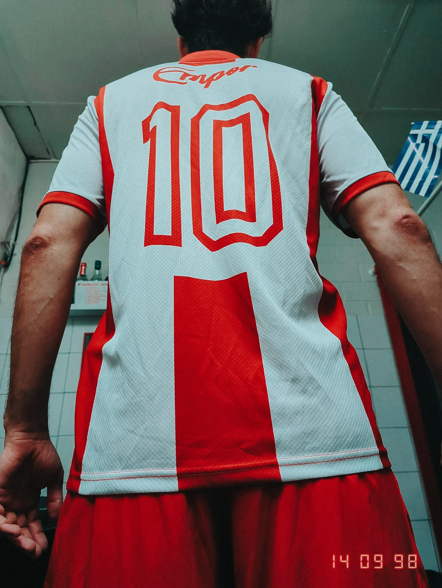 Das überdimensionale Vereinswappen von Empor Zöblitz wurde brustmittig eingestickt. Das Raval-Logo wurde im Trikotrot eingestickt, rückt somit in den Hintergrund und lässt das markenlose Antlitz des Original-Trikots hervorstechen. Ebenso wurde das außergewöhnliche Streifenmuster umgesetzt, bei dem die beiden äußeren Streifen nur leicht zum Vorschein kommen.