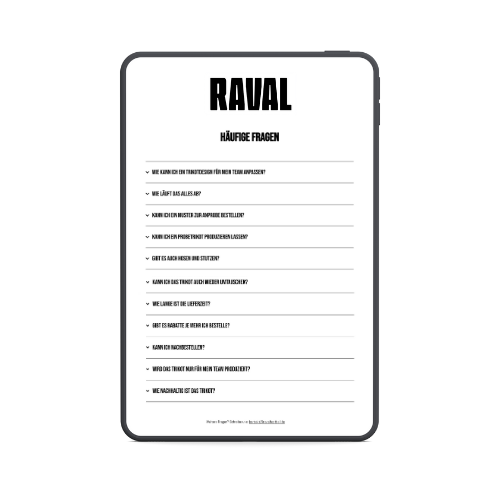 Bei Raval Football laufen eure Designs nie aus – ihr könnt sie jederzeit ab nur 1 Stück nachbestellen. So müsst ihr keine kompletten Trikotsätze mehr neu anschaffen, nur weil ein Teil fehlt. Für Nachbestellungen unter 10 Artikeln berechnen wir eine Versandpauschale von 35,00 € pro Bestellung, um den zusätzlichen Logistikaufwand abzudecken. Ab 10 Stück gilt wie gewohnt unsere Standardpauschale von 7,95 € pro Bestellung.